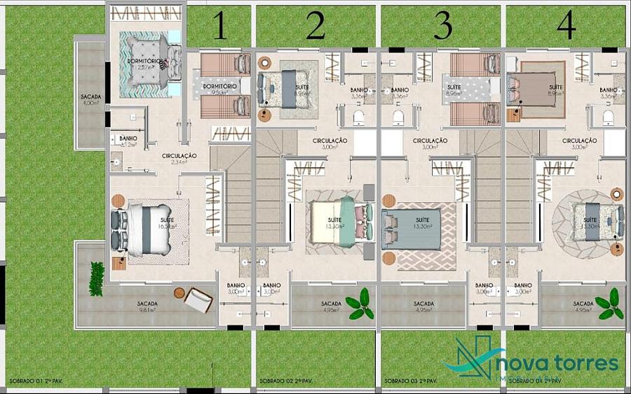 Sobrado com 02 dormitórios, sendo 02 suítes sendo 01 com sacada.