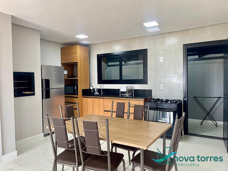 Sala de estar e jantar integragas, cozinha americana,churrasqueira, lavabo, lavandería separada, garagem.