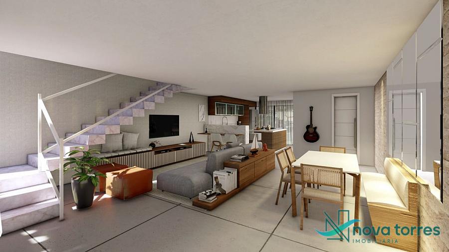 Com 03 dormitórios e 01 suíte, living integrado, espaço gpurmet e churrasquira à carvão, este sobrado contempla um belo quintal e 02 vagas de garagem. Com área de serviço, lavabo, e acabamento diferenciado.