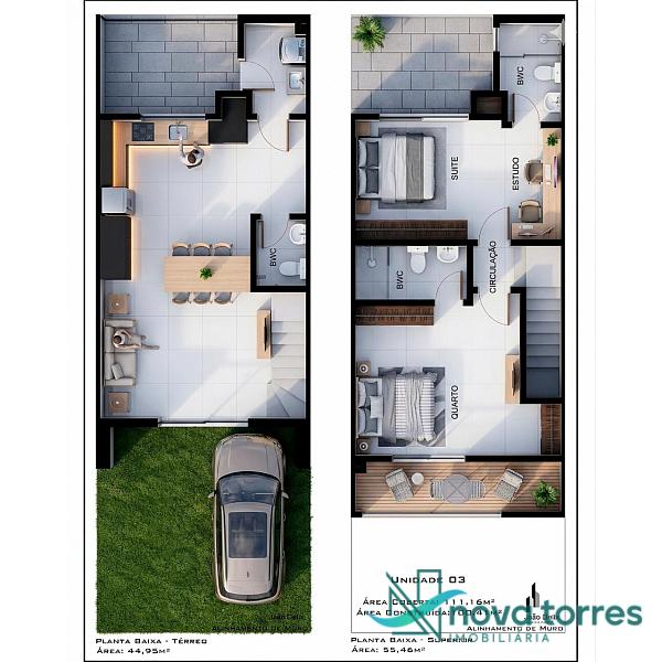 Sobbrado com  100,41 m², distribuídos de forma inteligente para oferecer conforto e praticidade. São 02 dormitórios sendo 02 suítes, localizados no bairro Morada das Palmeiras, em Torres – RS, a poucos metros do Mercado Bistek, em uma região tranquila e de fácil acesso.