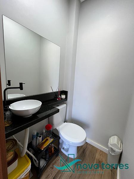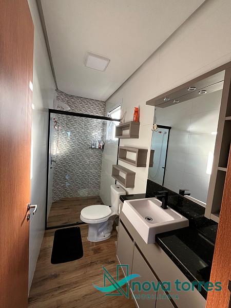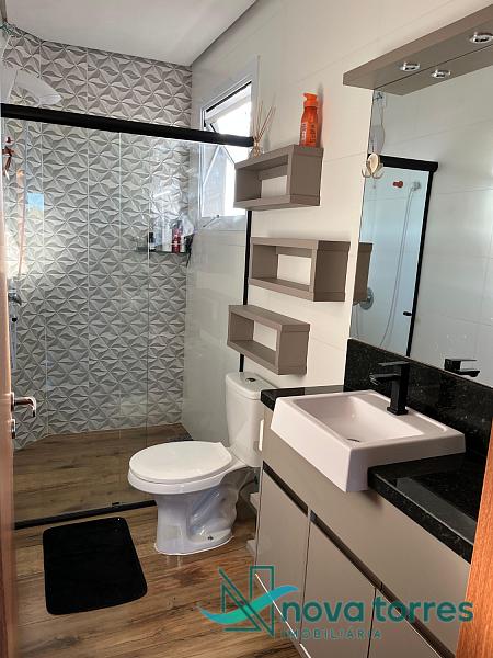 Sobrado triplex com 120m² de área total, distribuído de forma funcional e confortável. No primeiro pavimento, conta com garagem privativa, sala de estar, cozinha e banheiro social. O segundo piso abriga duas amplas suítes, ambas com sacada e boa incidência solar. No terceiro pavimento, há área de serviço e um terraço com vista para o mar. O imóvel possui acabamento em gesso, piso em porcelanato e churrasqueira, oferecendo um ambiente moderno e bem estruturado. Posição solar sul.